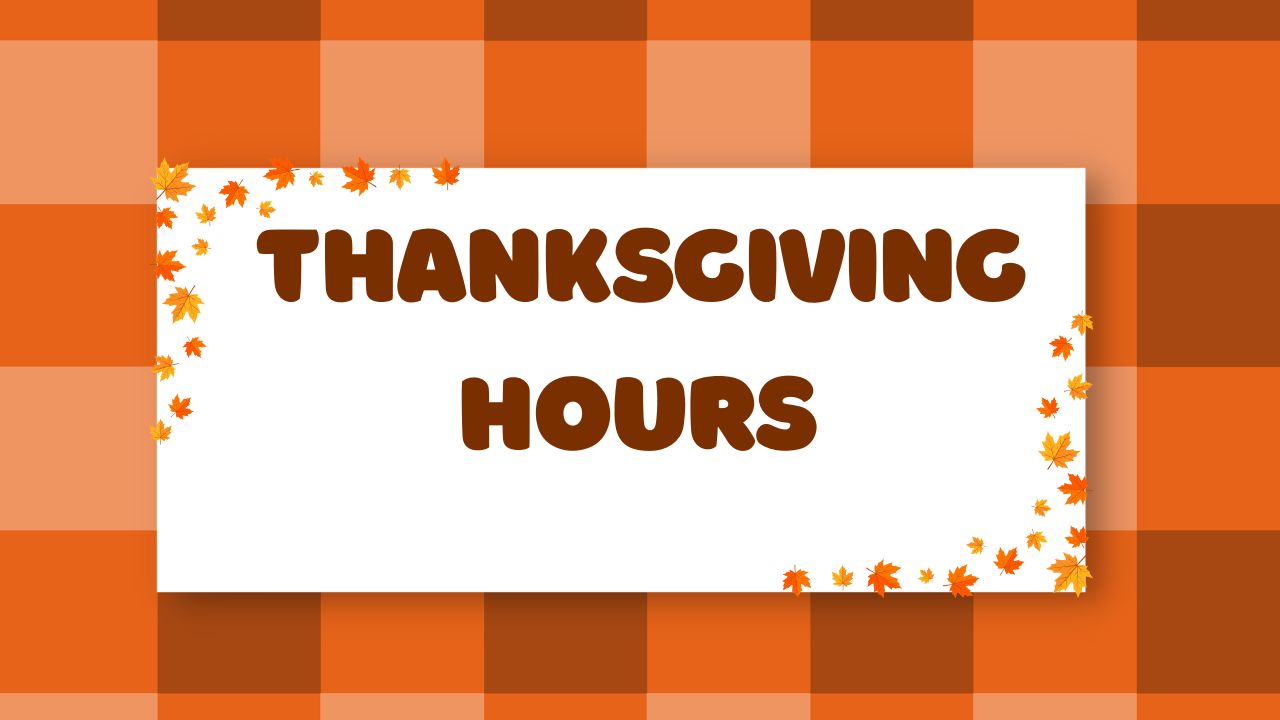 Thanksgiving Hours Library Services Library Services Wednesday, November 26th: Close at 5:00 pm Thursday, November 27th: Closed Friday, November 28th: Closed Share this: Share on X (Opens in new window) X Share on Facebook (Opens in new window) Facebook Email a link to a friend (Opens in new window) Email Print (Opens in new window) Print Like this:Like Loading... Share: